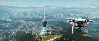 无人机从梧桐山上飞过
